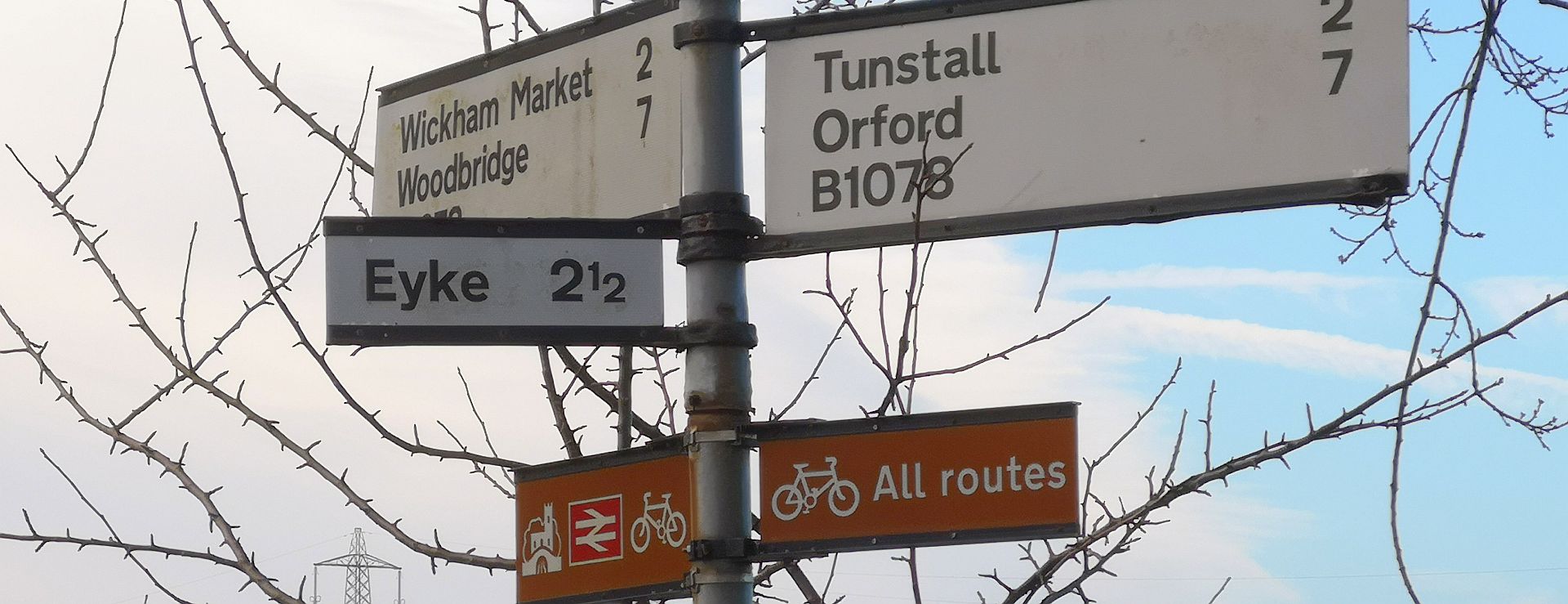 A well signed round East Suffolk route is easily picked up at Dallinghoo near Wickham Market, leading south to Woodbridge and north to Framlingham. It also links with off-road forest cycle trails and paths at Tunstall and Rendlesham.