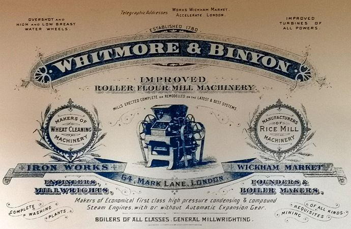 Whitmore and Binyon boilers and milling machinery got Wickham Market talked about around the globe. Amongst the company’s most ground-breaking designs was the revolutionary ‘roller mill’ – a steam-powered machine which made flour in a new, modern and super-efficient way.