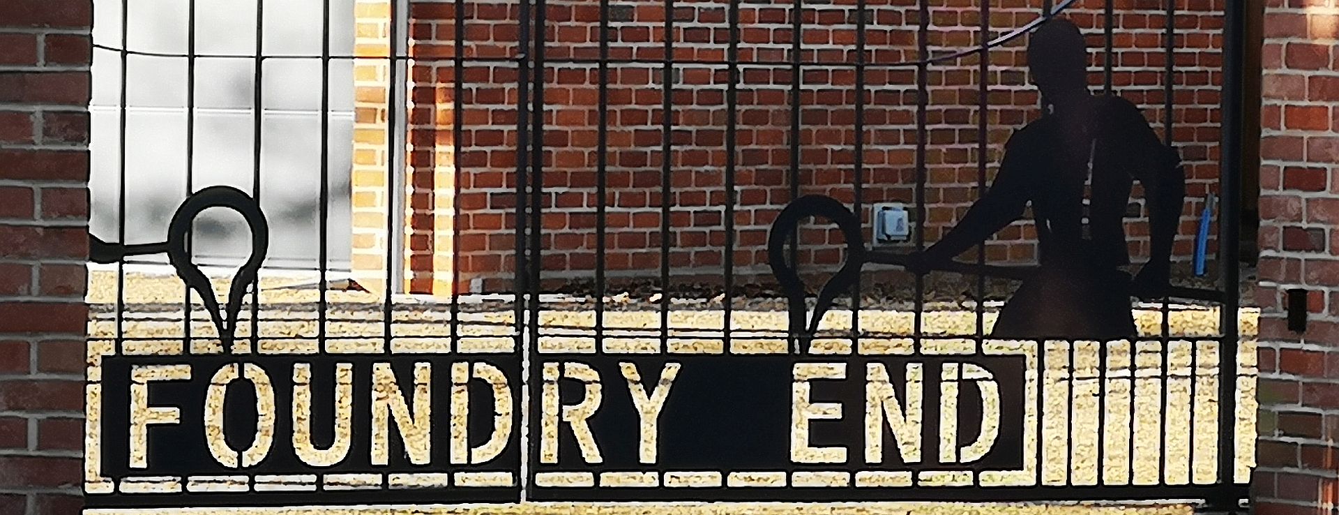 A pair of spiked-ball gateposts either side of a would-be drive mark the entrance to the former ironworks. You’ll find the old works office buildings next door faced with white brick – a sign of booming times, under William Whitmore in 1867. The final cottage on a short terrace swaps out a white brick frontage for brown slag. The gates of a modern house in Gospel Hall Close celebrate Foundry End. From fancy embellishments to rusty railings, once you get your eye in, there’s all sorts to discover at the bottom of High Street!
