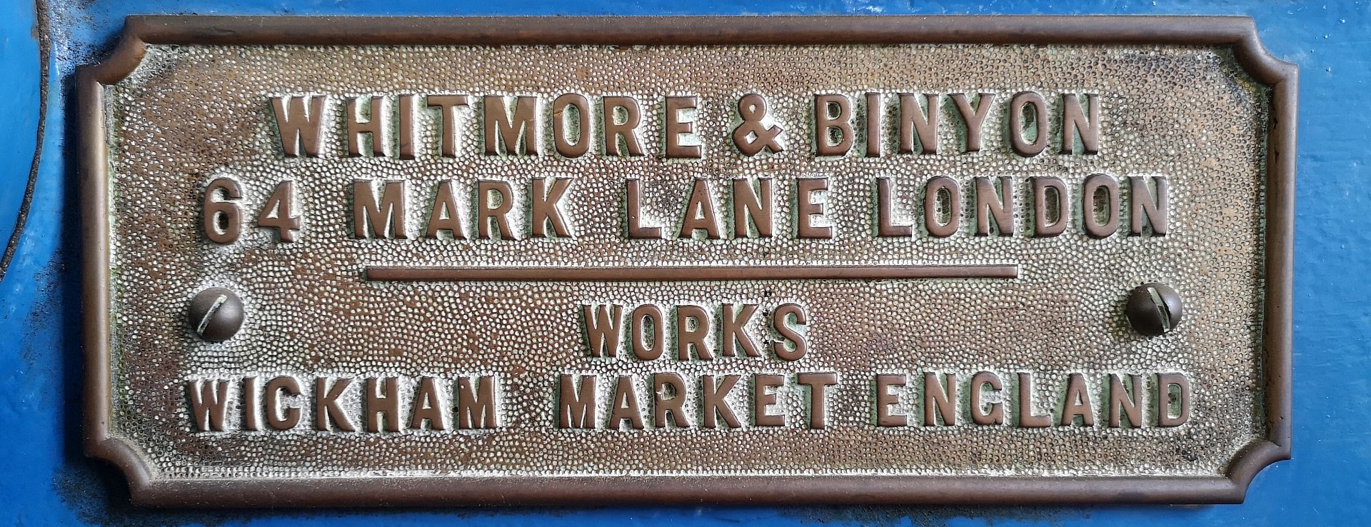 Nathaniel Whitmore had a small millwright’s business in Wickham Market from around 1780. It was made into a flourishing concern by John Whitmore (1801-1872) and later generations who followed the trade and also did building and carpentry work. On top of crafting milling machinery, they supplied a well, pump and 100 iron bedsteads to the village’s Plomesgate Workhouse (now housing) when it opened in 1836, later built it an extension and provided pews for the parish church!
